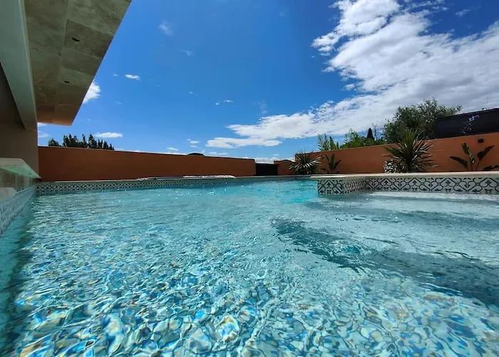 La Villa Nina ligger 3 km fra Cabezac, byder på udsigt over haven og sikrer gæsterne med en udendørs swimmingpool. Der er en balkon, et påklædningsområde og en sofa soveværelser med 5.